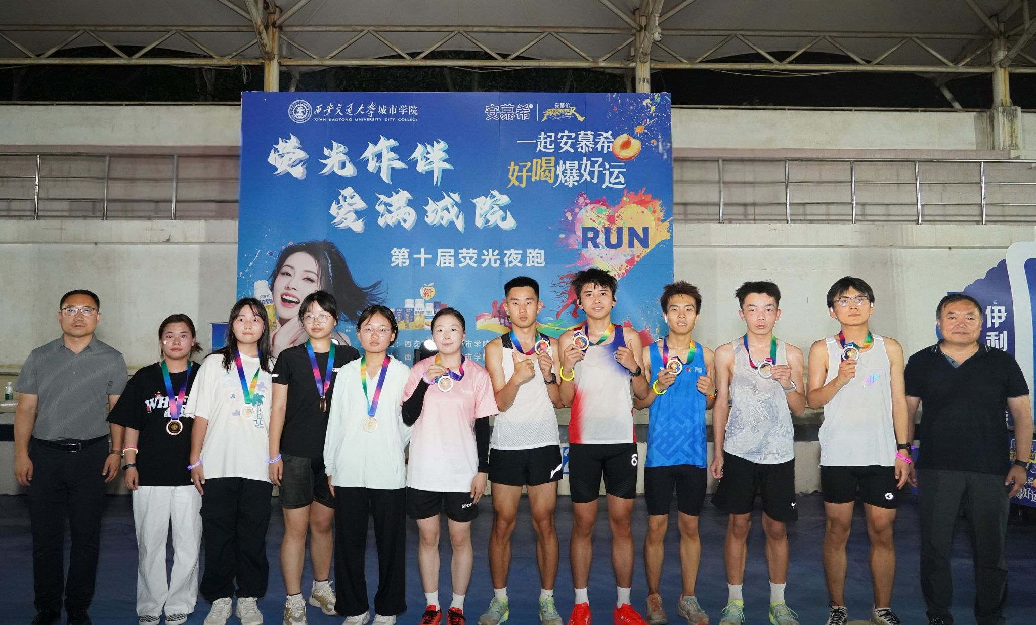 随着严红昌书记开响发令枪,青春校园跑正式开始。赛道上,同学们身着运动衫,佩戴荧光手环、手拿荧光棒奋力奔跑,展示城院学子积极向上、奋发有为的体育精神。随后,严红昌书记与霍伟森部长分别为男女生前五名进行颁奖。现场还举办了别开生面的露天晚会。