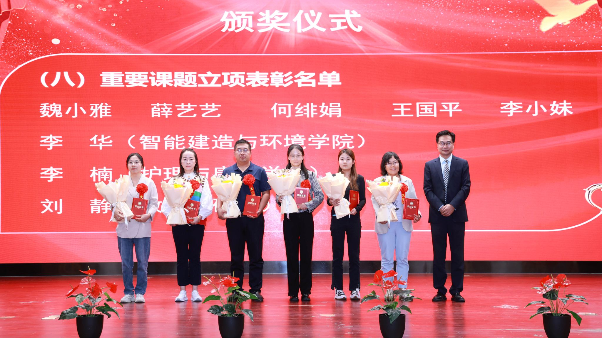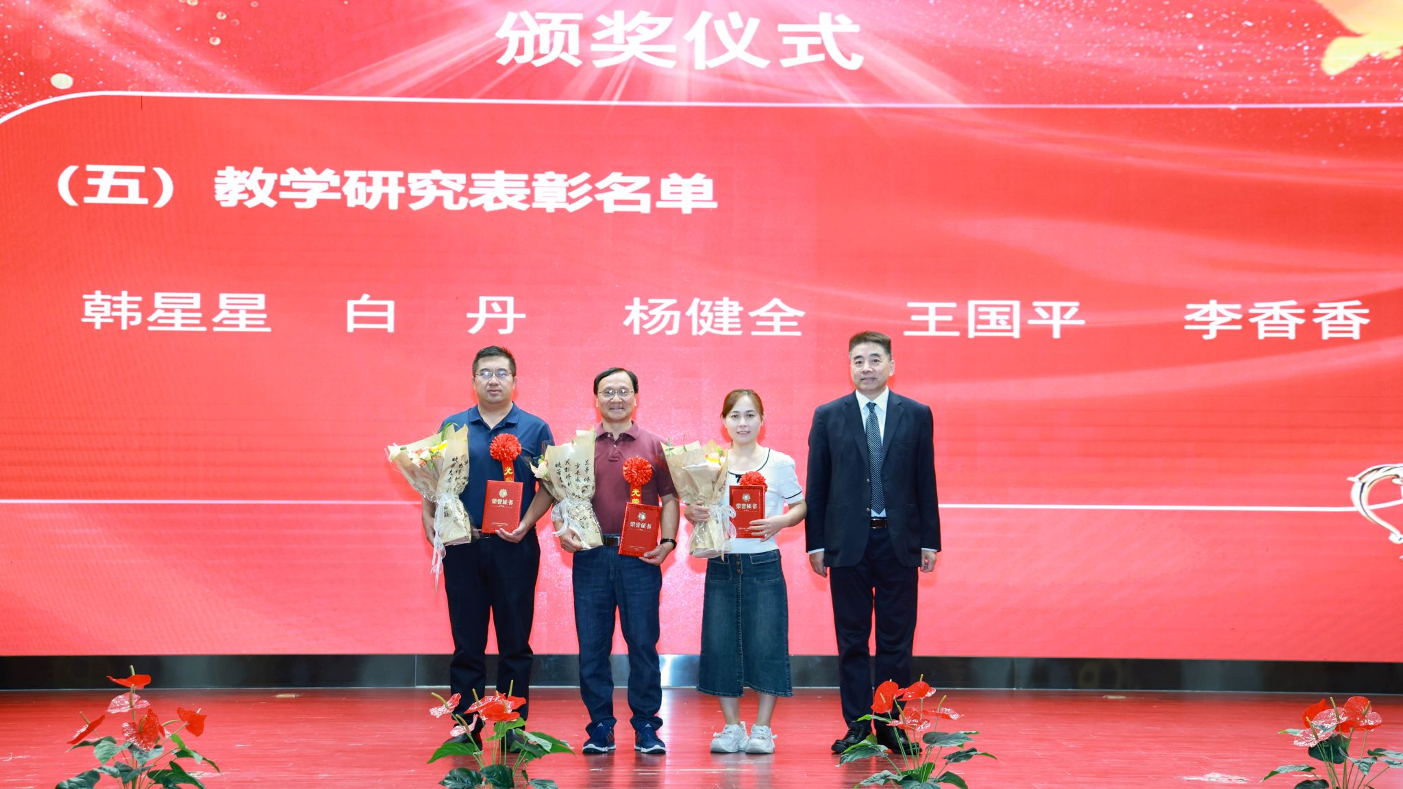 大会在庄严的国歌声中拉开帷幕。党委书记严红昌、副校长朱旭宣读表彰决定,对一年来在教学、科研、管理与服务等方面取得成绩的先进个人和集体进行表彰。与会领导分别为获奖个人和集体颁发荣誉证书并赠送鲜花。