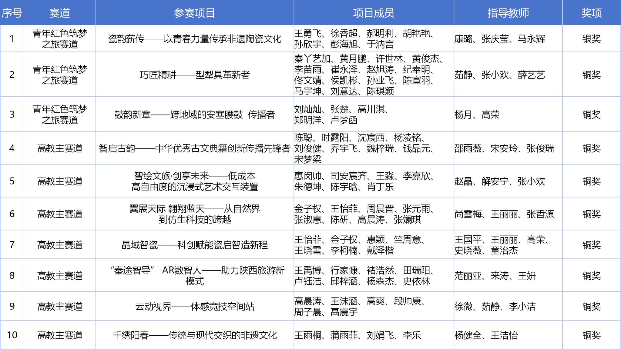 近日,中国国际大学生创新大赛(2025)陕西赛区复赛落下帷幕。参赛项目经网络评审、路演答辩评审和会议评审,产生了各赛道获奖项目,获奖项目已在教育厅官网公示。本届大赛中,西安交通大学城市学院参赛师生精心准备、反复打磨,《瓷韵薪传——以青春力量传承非遗陶瓷文化》项目获省赛银奖,《鼓韵新章——跨地域的安塞腰鼓传播者》等9个项目获省赛铜奖,青年红色筑梦之旅赛道获奖数实现新突破。