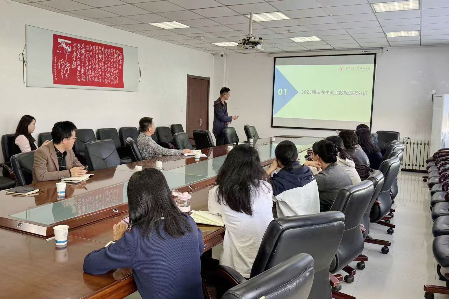 为贯彻落实党中央、国务院和省委、省政府“稳就业”“保就业”决策部署,统筹谋划2026届毕业生就业工作,9月23日下午,学校召开毕业生就业工作推进会。副校长朱旭,招生就业处副处长吴昊翔,各学院分管就业工作领导、学工负责人和就业办工作人员参加会议。