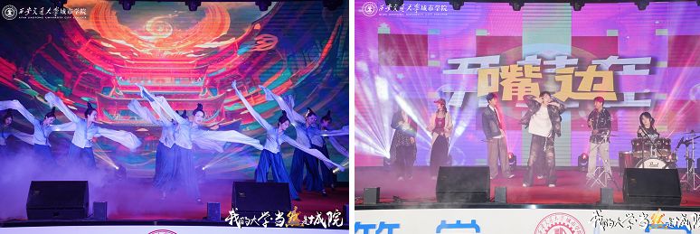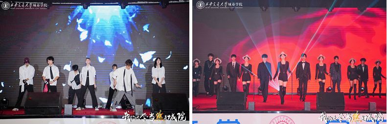 晚会分为“逐梦路上”“同启新篇”“锦绣华章”“未来可期”四大主题篇章。演出在热情洋溢、活力四射的歌曲《鲜花》中拉开帷幕,舞蹈《阳光男孩阳光女孩》以明快的节奏和朝气蓬勃的表演,展现了新生们活力满满的精神面貌;教职工表演的民舞《袖舞风华》则用古典雅致的舞姿诠释了传统文化之美,让观众沉醉于中华美学的韵味之中;歌曲串烧《NCBlood派对》融合多首流行金曲,青春洋溢的歌声引发全场大合唱;礼仪队的走秀《Z世代狂想曲》将时尚与个性完美结合,展现了新时代青年的多元风采;爵士舞《Helicopter》动感十足,舞者们用利落的动作展现了协作的默契与力量;诗朗诵《长河吟》气势磅礴,经开区关工委的老师们以激昂的语调诉说着家国情怀,引发强烈共鸣;民乐合奏《精卫》以古筝、二胡等传统乐器演绎出坚韧不拔的精神,悠扬的旋律令人回味无穷;歌曲串烧《城院永远OK》则用欢快的旋律传递了师生对校园的热爱,少年时期的歌曲氛围感染了在场每个人;街舞《Fake love》凭借高难度的动作和燃爆全场的节奏,赢得阵阵掌声;杨国栋老师讲述的《红铁》通过真实的奋斗故事,展现了不畏艰难的拼搏精神;退伍军人的朗诵《青春的迷彩信仰》以真挚的情感致敬理想,让人感受到青春的责任与担当;遇见瑜伽社的《万象新生》则以柔美和谐的姿态,展现了身心合一的健康之美;歌曲《城院人的歌》唱出了全体师生共同的校园情怀,熟悉的旋律引起了大家对校园生活的美好憧憬;民舞《如梦令》舞姿曼妙,仿佛将观众带入了诗情画意的江南水乡。新生辅导员与学生代表的朗诵《长大的模样》则用细腻的语言诉说着成长的感悟,引发新生们的深深共鸣;演出以全场师生齐唱《相亲相爱》温暖的旋律收尾,寓意全体城院人携手同行,以“逐梦”的勇气奔赴新程,在城院的沃土上绽放“锦绣”青春,共赴“未来可期”的人生新篇。
