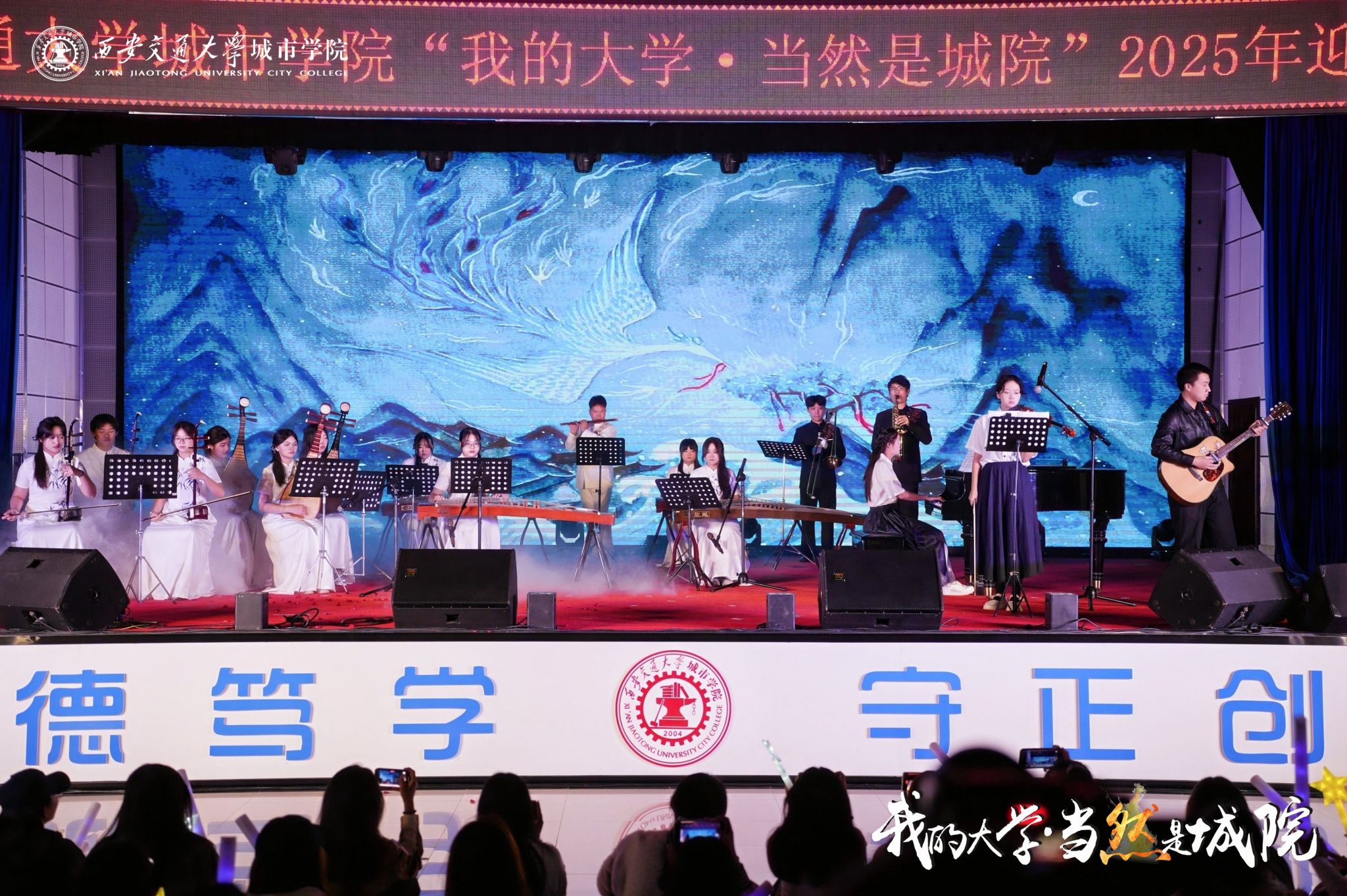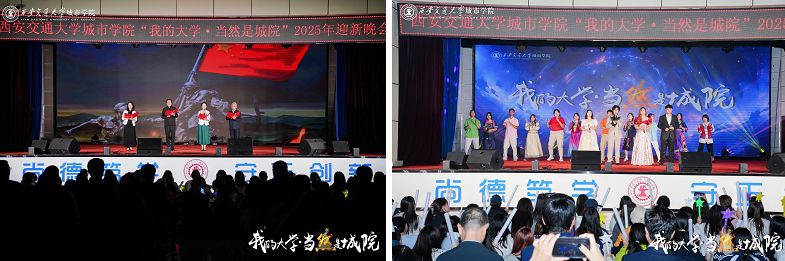 9月28日晚,西安交通大学城市学院“我的大学·当然是城院”2025年迎新晚会在大学生活动中心举行。西安市关心下一代志愿者服务团杨国栋、经开区关心下一代志愿者、“五老”代表,全体校领导,各二级学院、部(处)负责人,各二级学院学生工作负责人,辅导员及2025级新生共同开启大学时光的温暖序章。