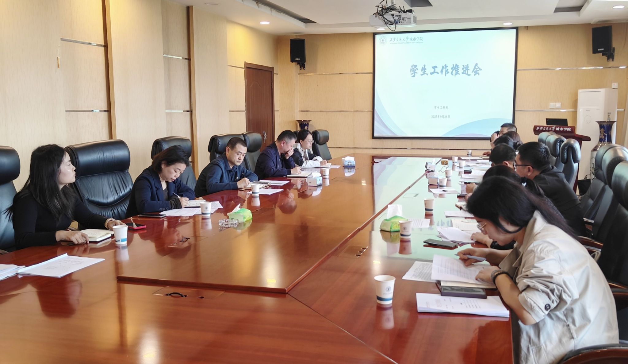 9月28日下午,西安交通大学城市学院召开“统筹重点任务,筑牢育人根基”学生工作推进会。党委副书记、副校长陈书荣,各二级学院学生工作负责人、学生工作处各办公室负责人参加会议。会议由学生工作处处长辛红伟主持。