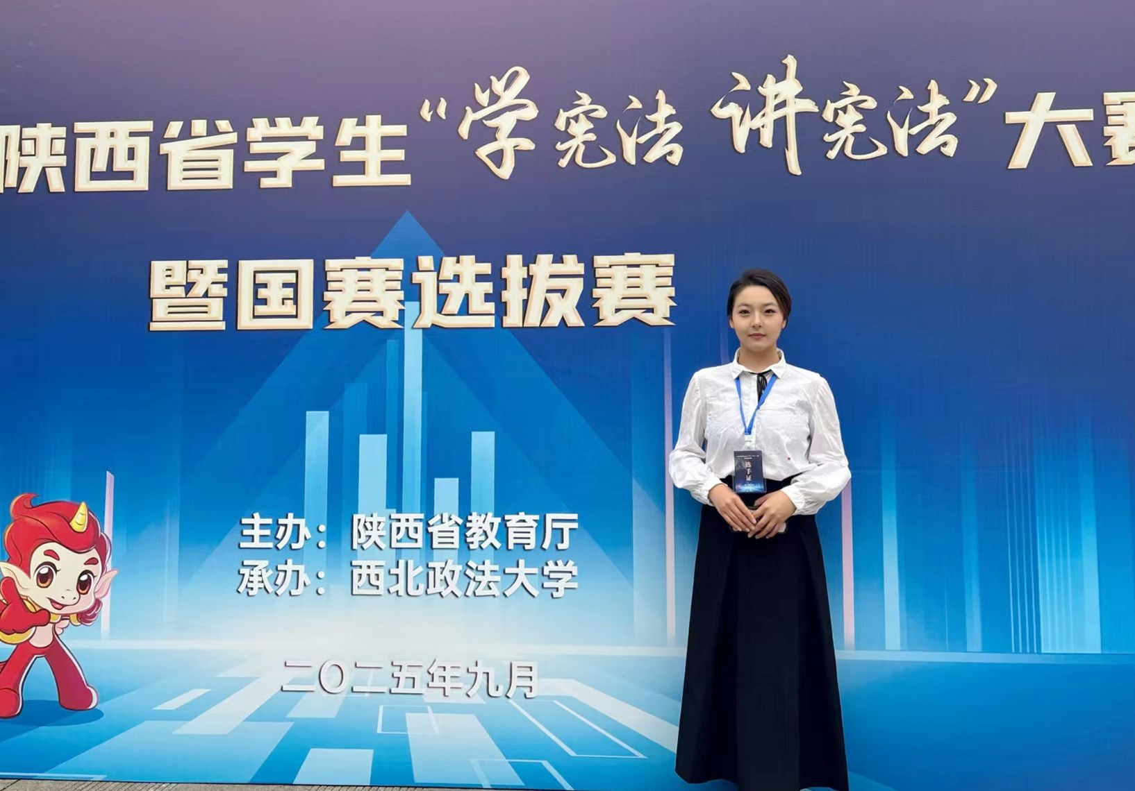 本次大赛由陕西省教育厅主办,设有演讲比赛、素养竞赛两大赛道,涵盖小学至高校四个组别。全省180余所大中小学的200余位选手入围此次大赛。接到大赛举办通知以来,团委联合传媒与外国语学院积极组织动员师生参与,共征集演讲作品50个。经过层层选拔,最终传媒与外国语学院刘芝菡同学脱颖而出,凭借对全面依法治国背景下宪法故事的精彩演绎,成功入围决赛。在决赛阶段,她紧扣“宪法精神与建设法治社会”命题,以扎实的功底和出色的应变能力获优秀奖。