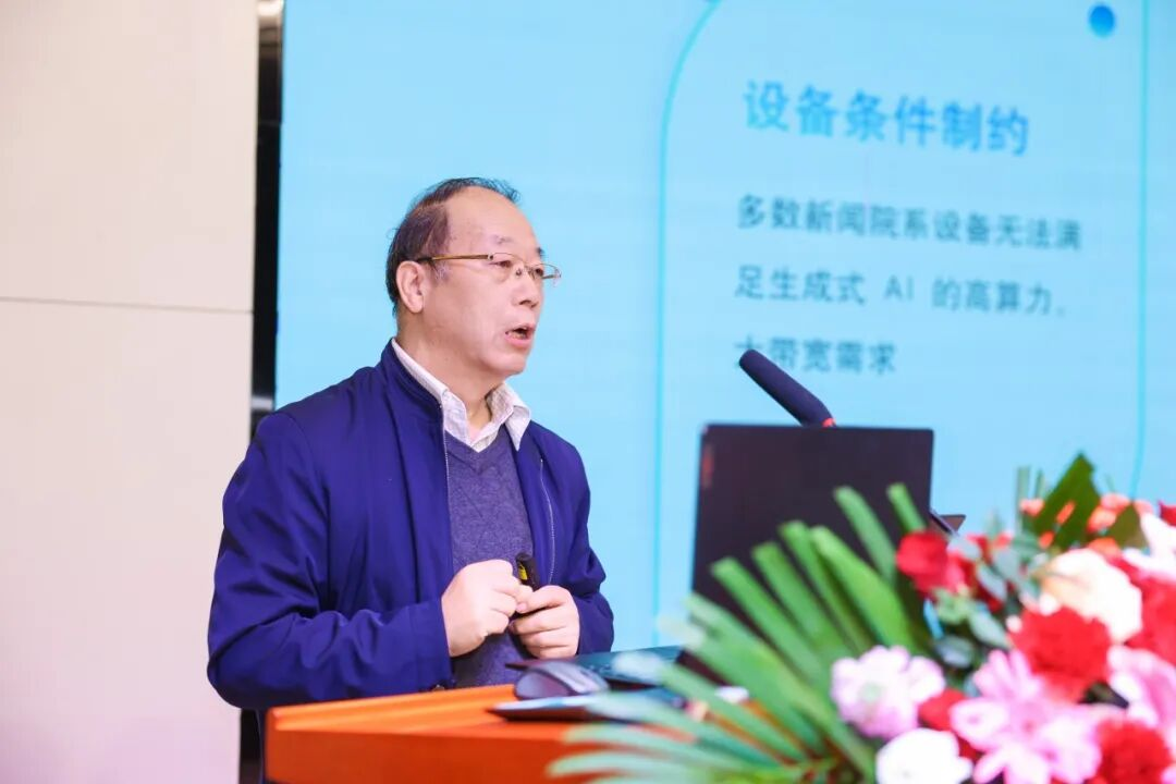 李明德教授围绕《人工智能时代新闻传播教育系统性变革的动力、难点和路向》作主旨演讲。他强调,未来,新闻传播教育必须进行以理念创新为先导的教育转型,以制度重构为保障的系统优化,以实践探索为驱动的模式突破,培养“技术精通,有人文坚守,有国际视野”的新时代新闻人才。