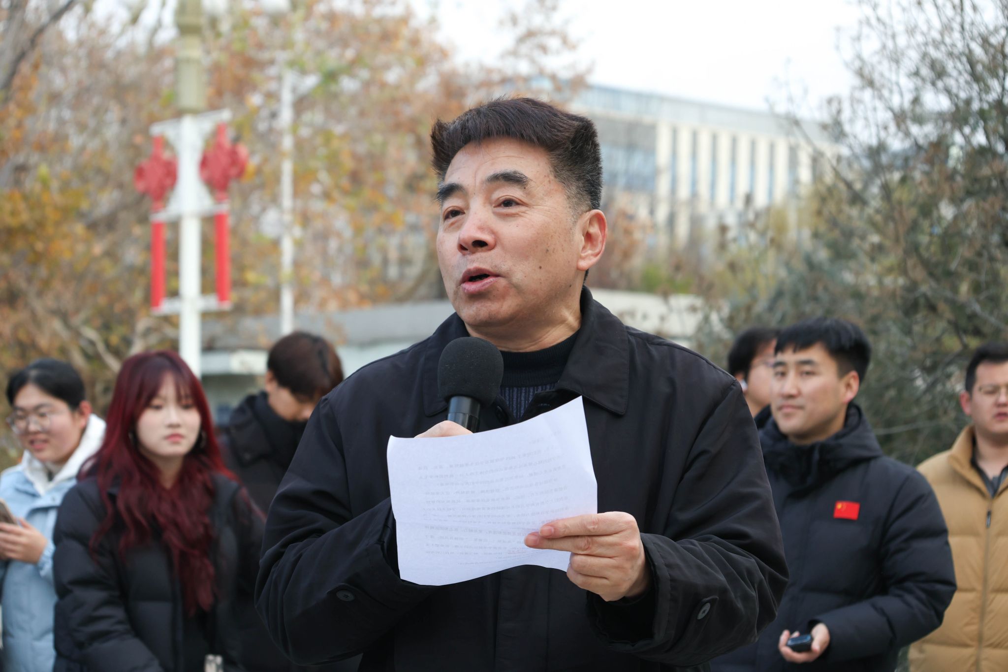 比赛前,通识教育学院体育教学部李严带领全体参赛人员进行热身活动。党委副书记、副校长陈书荣和副校长朱旭分别为教工组和学生组作赛前动员。陈书荣通报了2025年学校在体育方面取得的成绩,并表示举办冬季越野赛是学校长期以来坚持的一项优良体育传统。学校始终关心教职员工的身心健康,倡导“快乐工作,健康生活”的理念,积极组织各类文体活动,努力营造积极向上、和谐奋进的校园文化氛围。朱旭希望同学们发扬“安全第一、友谊第二、比赛第三”的体育风尚,在比赛中相互鼓励、彼此关照,充分展现城院学子团结奋进、朝气蓬勃的良好风貌。