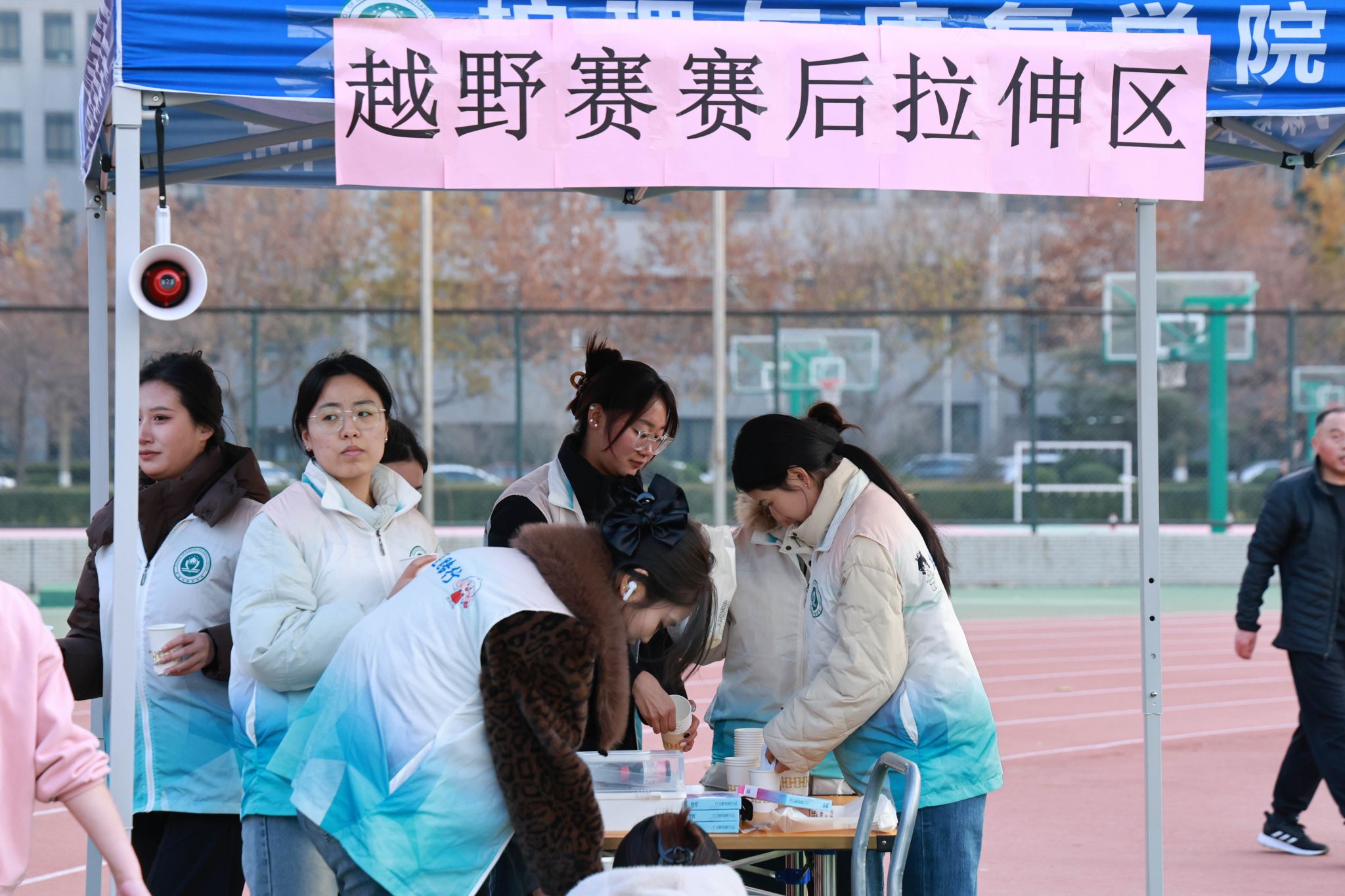 随着发令枪响,越野赛正式开始。选手们如离弦之箭冲出起点,赛道上瞬间掀起阵阵竞技热潮。他们或结伴前行、相互鼓劲,或孤身领跑、奋力冲刺,脚下的步伐坚定而有力,身后的身影在冬日暖阳中舒展延伸。全体工作人员忠于职守,热情服务。志愿者们暖心助力,为师生做好后勤服务。西安大兴医院和校医院组建专业医疗救护团队,为我校冬季越野赛全程筑起“健康防线”。
