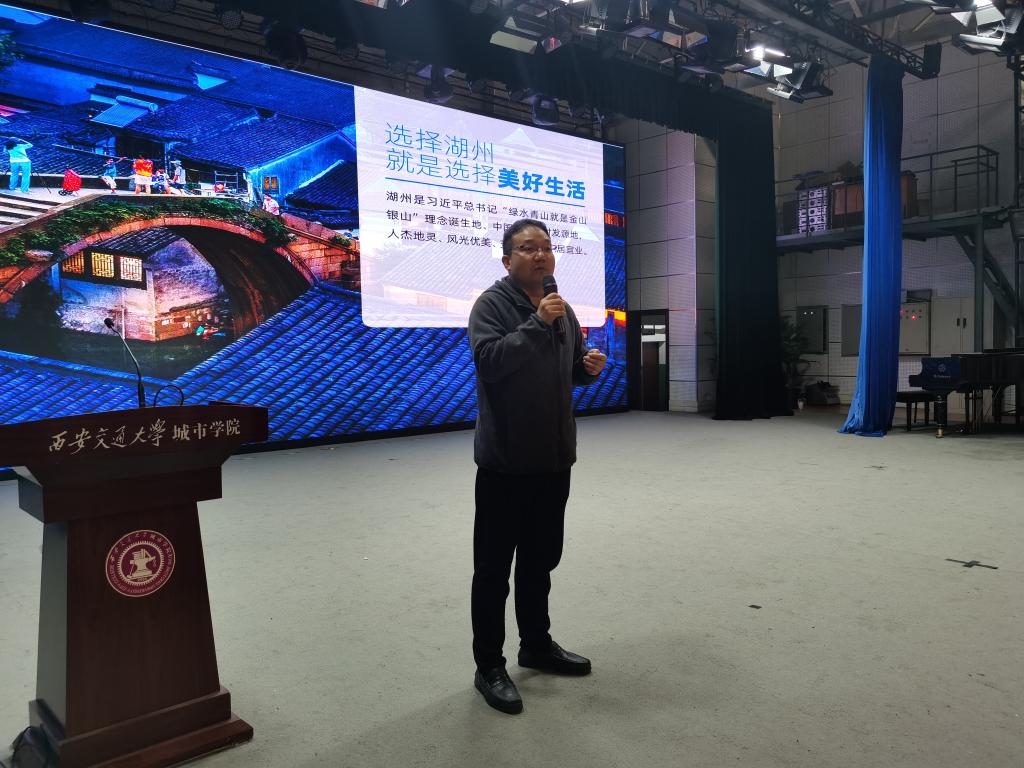 为拓宽西安交通大学城市学院毕业生就业渠道,3月25日,学院特举办2021年浙江湖州专场地区类招聘会。湖州市委宣传部文化发展改革处处长陆孙杰,湖州市人力社保局李文华科长等领导带队,带领30余家文化传媒类优质企业来我院选聘毕业生。