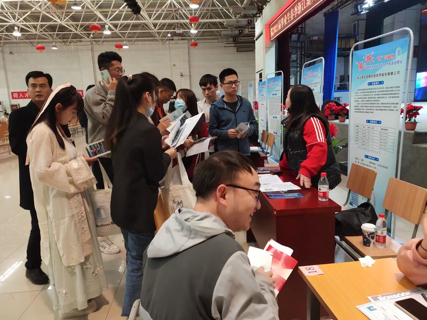 会上,湖州市人社局李文华科长就湖州市各区县的发展优势、生态环境、人才引进优惠政策等方面做详细介绍。毕业生积极与用人单位交流沟通,会场气氛热烈。