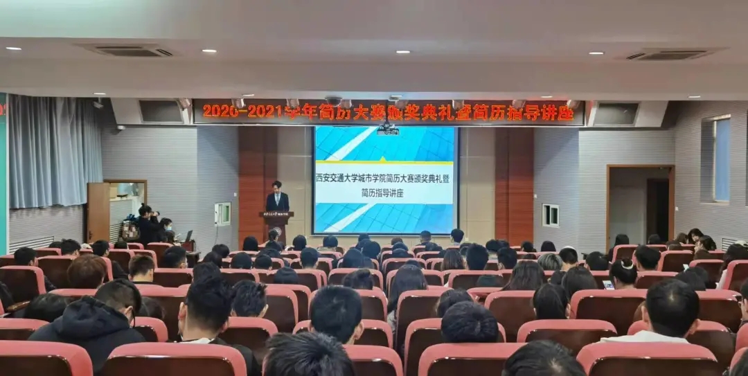 为进一步提升学生的就业竞争力,加强就业指导,西安交通大学城市学院就业指导中心于3月30日举办了“2020-2021学年简历大赛颁奖典礼暨简历指导讲座”。参加此次活动的有学生服务中心副主任马瑞,新东方教育科技集团西安学校人力资源部总监助理李刚华、招聘部经理秦迪,传播系学生工作负责人杨耀聪,外语系学生工作负责人关天骄,传播系辅导员杨月、任瑾,机械系辅导员李乐,经济系辅导员杨静怡及就业指导中心全体人员,本次活动由路凡主持。