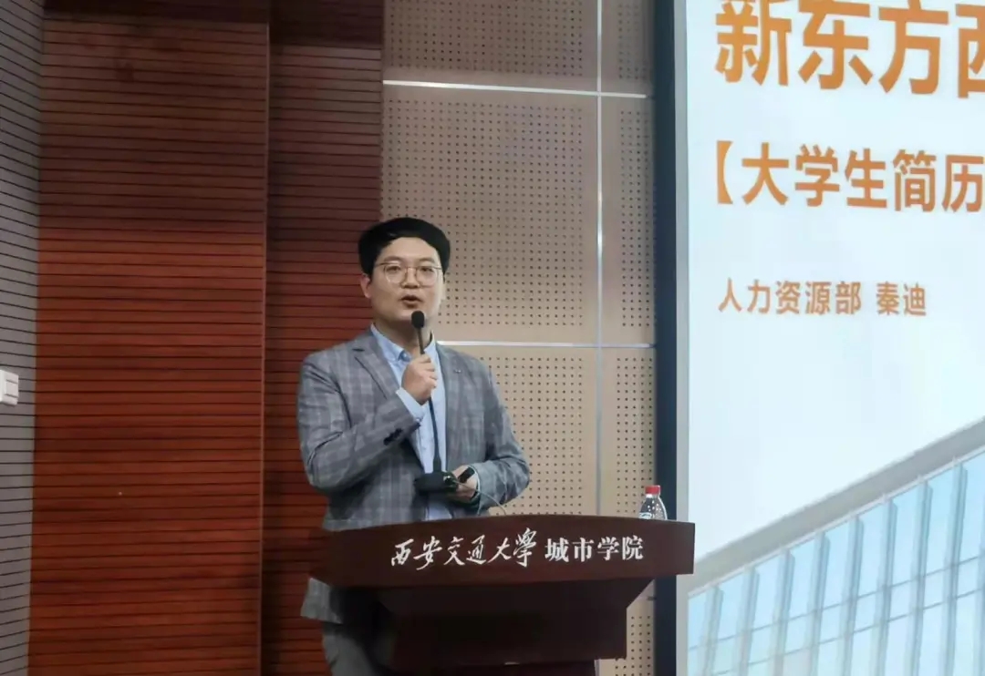之后,由新东方教育科技集团西安学校人力资源部招聘部经理秦迪进行了以“大学生简历撰写与修改策略”为主题的简历指导讲座,对大学生简历常见的问题与改进方法进行了详实的介绍与说明,受到学生的一致好评!