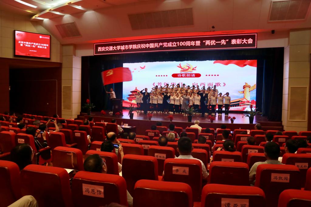 7月5日下午,西安交通大学城市学院庆祝中国共产党成立100周年暨“两优一先”表彰大会在教二报告厅举行。出席大会的有学院领导、党委委员、纪委委员、各系(教学部)、中心(部)副职及以上干部、各党支部书记、委员、受表彰的先进党支部代表、优秀共产党员、优秀党务工作者以及教职工和学生代表。大会由院长助理徐君陶主持。