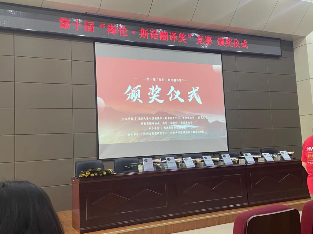 6月24日,第十届“海伦·斯诺翻译奖”竞赛颁奖典礼在西北大学举行,外语系副教授袁长普和学生毕韩玥受邀参加典礼。